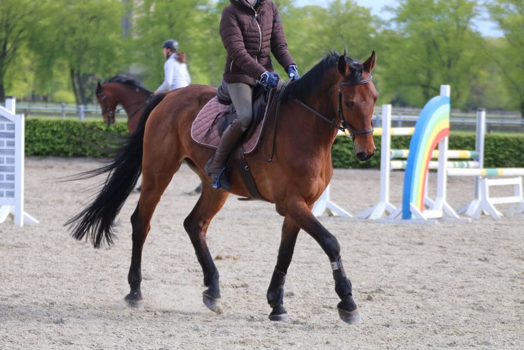 9 jähriger Wallach: der Wallach ist Jagdrennen gelaufen, kennt Jagdsprünge , sozial auf der Weide. Er ist ein kräftiger Vollblüter, der seinem Reiter gefallen will.